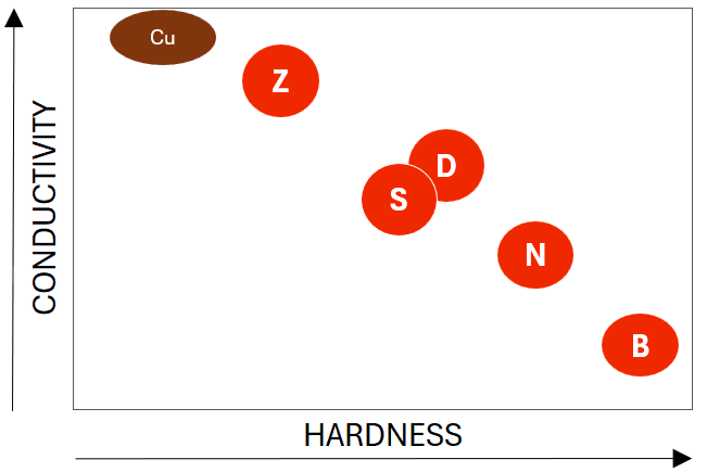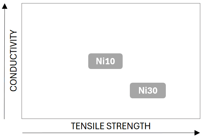 Combines the advantages of CuCr and CuZr alloys in a single material